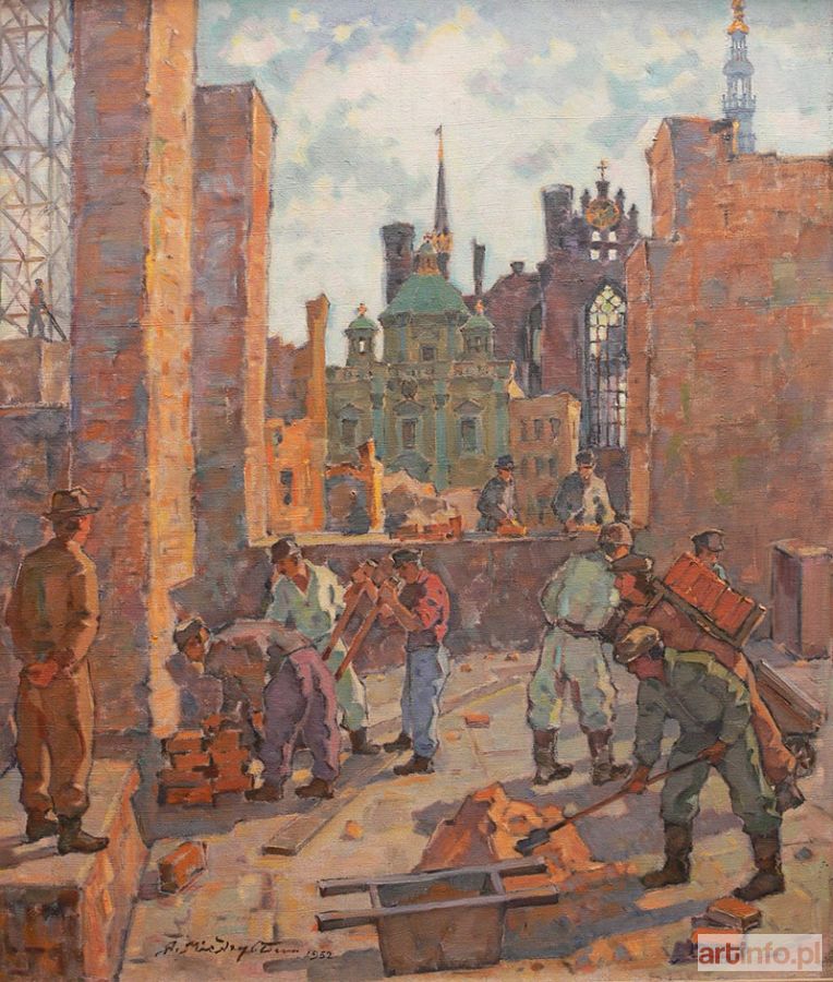 olej, płótno, 75 × 64 cm sygn. i dat. l. d.: A. Międzybłocki 1952 na odwrocie nalepka z dorocznej wystawy Związku Zawodowego Polskich Artystów Plastyków okręgu gdańskiego z opisem pracy