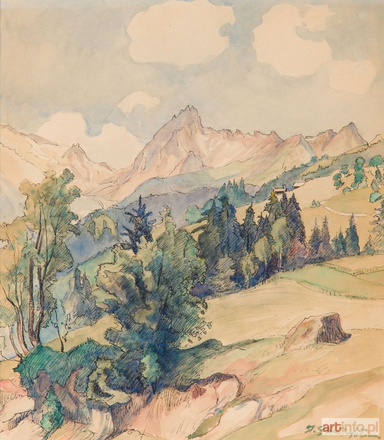 akwarela, tusz/papier, 34 x 30 cm (w świetle passe-partout) sygnowany p.d.: 'A. Międzybłocki'