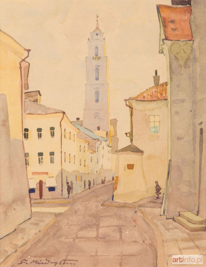 akwarela/papier, 21,8 x 16,6 cm (w świetle passe-partout) sygnowany l.d.: 'A. Międzybłocki' i opisany na odwrociu: 'Wilno' na odwrociu pieczątka pracowni artysty