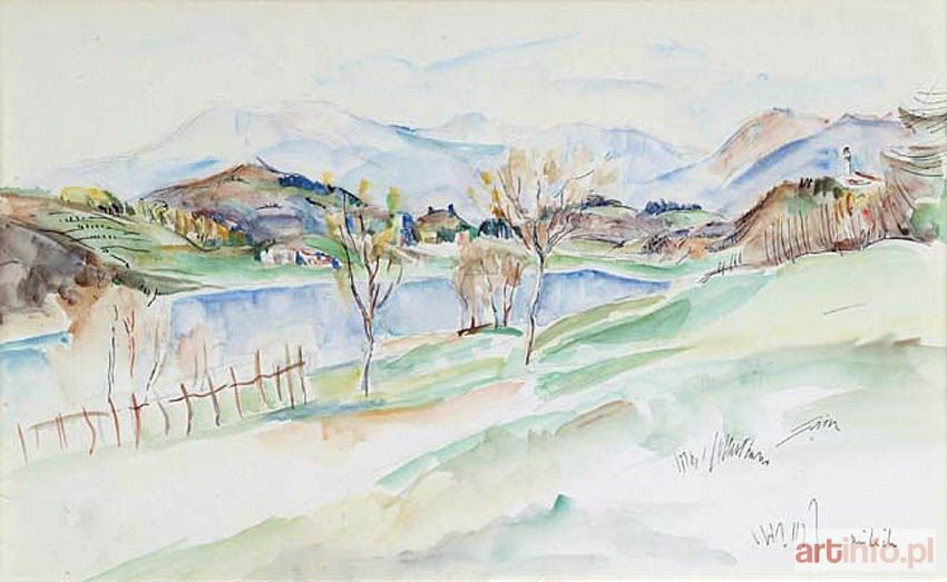 ołówek, tusz, akwarela, 26 x 43,5 cm w świetle passe-partout, sygnowany p.d. "Milich"