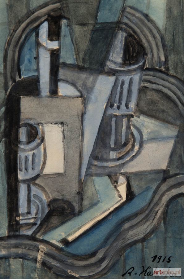 HALICKA Alicja | Kompozycja kubistyczna z butelką i kartkami papieru