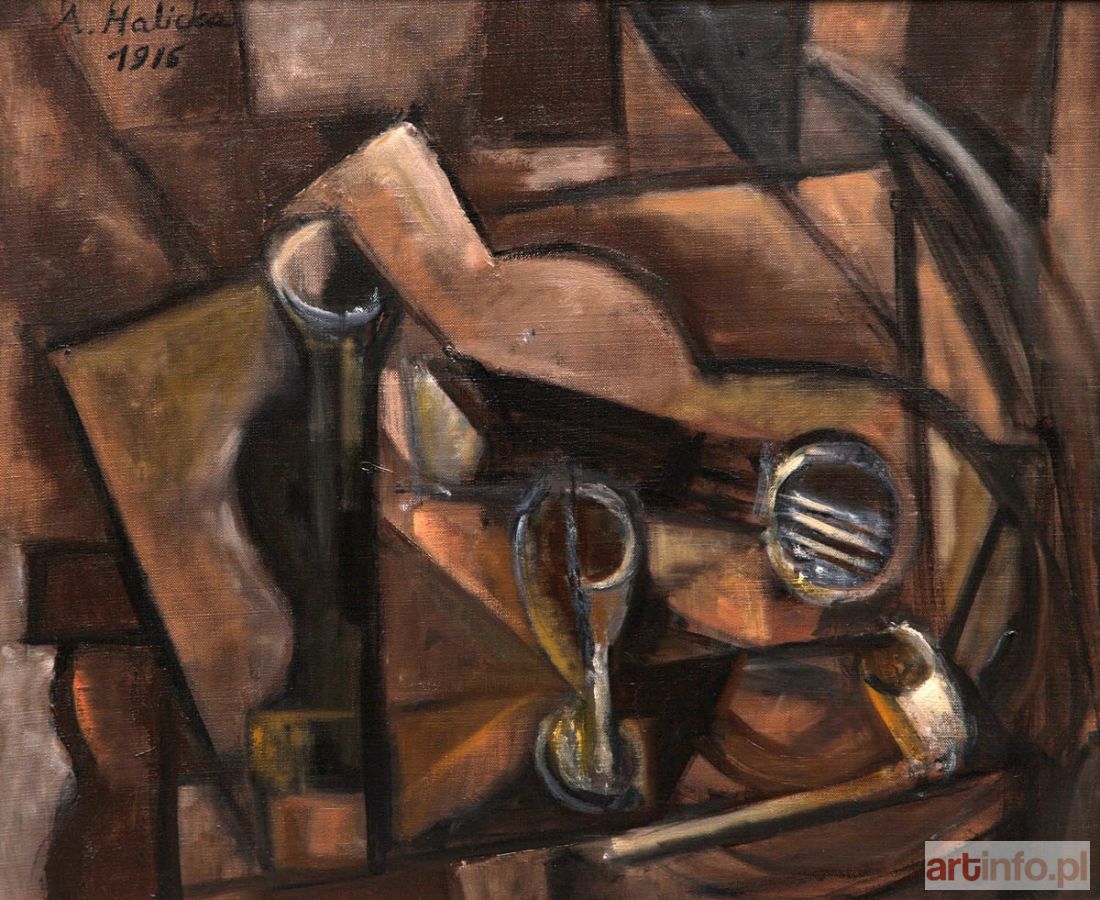Kompozycja kubistyczna z wazonem , szklanką i fajką