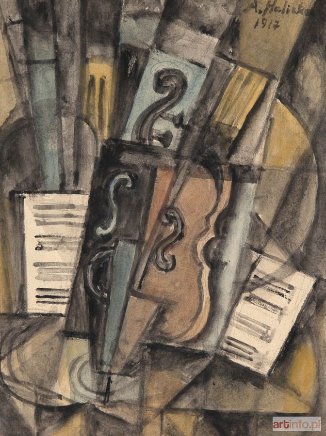 Kompozycja kubistyczna ze skrzypcami i partyturami