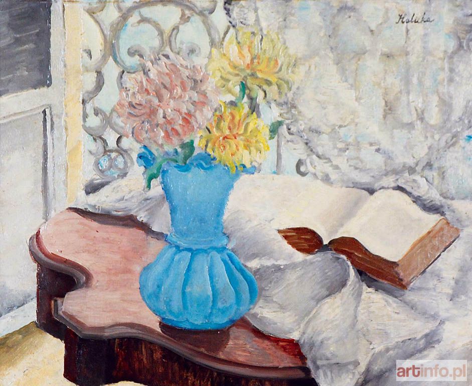 i książką, ok. 1927-1930 olej, płótno, 50 x 61 cm sygn. p. g.: Halicka