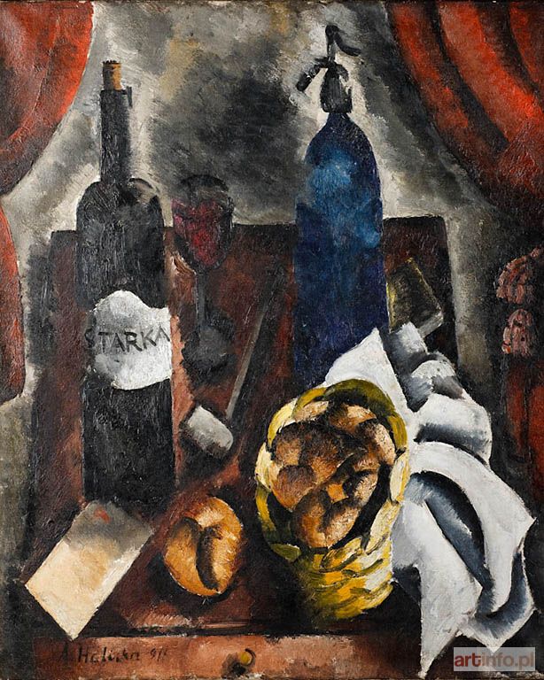Oferowany obraz jest najwybitniejszą pracą Alicji Halickiej jaka pojawiła się do tej pory na rynku aukcyjnym. Reprezentuje on wczesnokubistyczną, nawiązującą do sztuki Paula Cezanne`a fazę widoczną w sposobie ujęcie prezentowanych przedmiotów. Wyra¼na jest osiowość kompozycji i charakterystyczne dla wczesnego kubizmu draperie. Ciekawa pod względem formalnym jest również paleta barwna jak i gruba faktura powierzchni obrazu. Artystka w 1913 roku wyszła za mąż za wybitnego kubistę Ludwika Markusa (Luisa Marcoussisa), dzięki czemu weszła w ścisłe kontakty z najlepszymi kubistami tamtego okresu takimi jak Pablo Picasso czy Georges Braque. Prezentowana praca śmiało może być porównywana z najlepszymi obrazami Braque`a z lat 1914-1915 jak również samego Marcoussisa. Z uwagi na wyjątkową wartość artystyczną i klasę malarską "Martwa Natura ze Starką" budzi zachwyt historyków sztuki i jest niekwestionowanym kolekcjonerskim rarytasem.