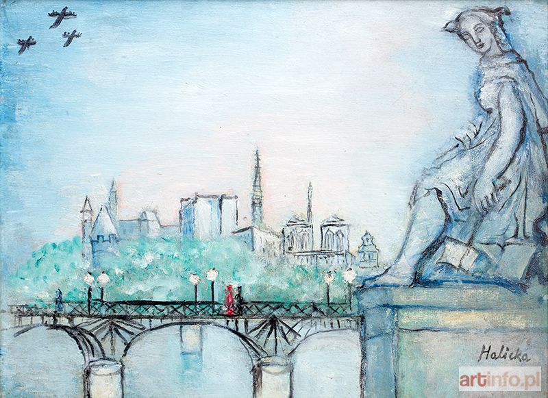 Pejzaż, w szczególności zaś widoki miejskie, zaczął dominować w twórczości artystki od lat 30. XX w. Malarka była niejako zmuszona przez swojego męża, Louisa Marcoussisa - także kubisty, do porzucenia skądinąd udanych i dobrze przyjętych przez krytykę kompozycji kubistycznych i odnalezienia nowej ścieżki plastycznego wyrazu. Pierwsze „pejzaże” pojawiły się w serii gwaszy, które Halicka przywiozła z podroży po Kazimierzu w latach 1919-1921, jednak pełniły rolę tła dla przedstawień. W latach 30. XX w. skierowała swoje zainteresowanie ku architekturze i ulicom Paryża. Zwłaszcza Place de la Concorde był z upodobaniem przez artystkę „portretowany”. Odtąd nieco odrealnione, utrzymane w lirycznej nastrojowości pejzaże miejskie będą rysem rozpoznawczym twórczości Halickiej.