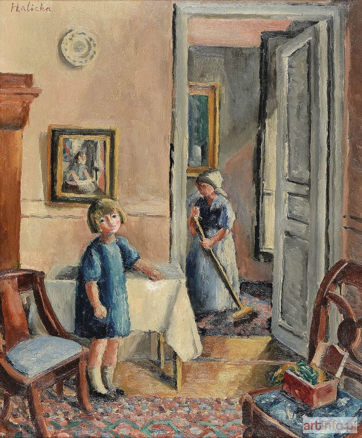 olej, płótno; 65 x 54 cm; sygn. l. d.: Halicka; na odwrocie, na ramie francuska naklejka z firmy Delf (...) Art z nazwiskiem właścicielki obrazu: MME BARAOLT i innymi adnotacjami (nalepka drukowana) oraz na płótnie u góry napis: N 39.