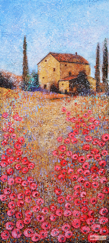 olej, akryl, szlagmetal na płótnie, 150 x 70 cm sygnowany i opisany na odwrociu: ‘"Włoskie wakacje”, Alicja Kappa, 2019’
