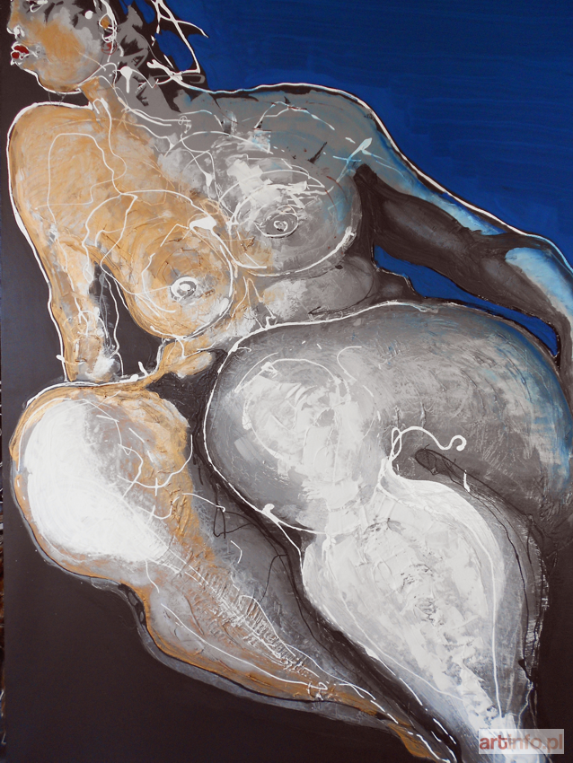 olej na płótnie, 130 x 100 cm sygnowany p. d. róg: ‘And. Domżalski 18’ opisany na odwrociu: ‘Tytuł: AKT W BŁĘKICIE, Autor: ANDRZEJ DOMŻALSKI, Rok: 2019, And. Domżalski’