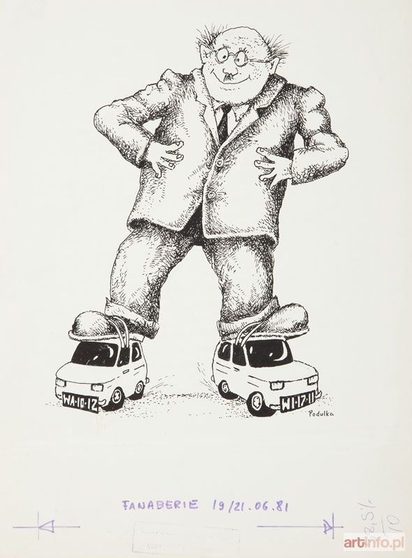 tusz/papier , 26 x 19 cm sygnowany p.d.: 'Podulka' u dołu opisany: 'FANABERIE 19/21.06.81' oraz pieczęć dziennika 'SZTANDAR MŁODYCH' na odwrociu również pieczęć czasopisma: 'SZTANDAR MŁODYCH | wszystkie wydania'