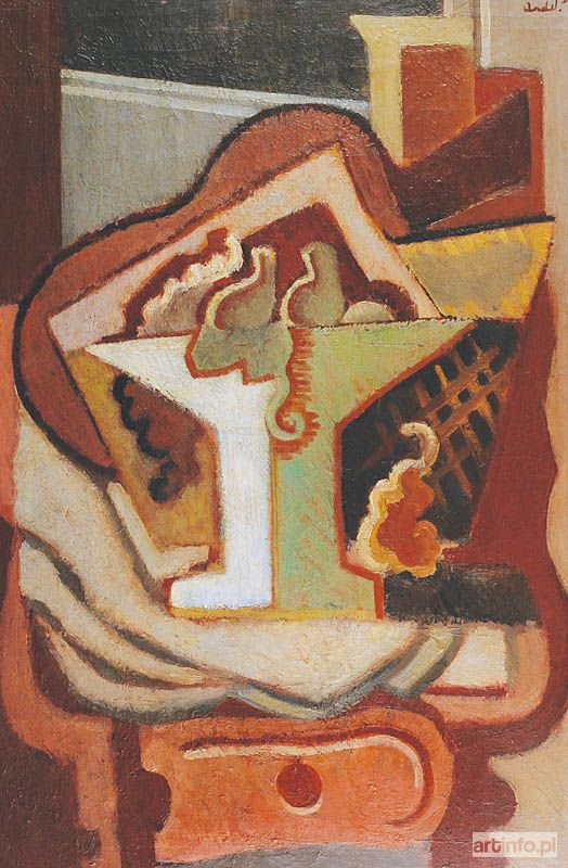 Artysta początkowo inspirował się sztuką Młodej Polski, jego prace były bliskie tematyce obrazów Jacka Malczewskiego oraz Vlastimila Hofmana. Następnie w latach 1911-1913 współorganizował wystawy Niezależnych wzorowane na paryskim Salon des Indépendants. W 1917 wraz ze swoim bratem Zbigniewem Pronaszko i z Tytusem Czyżewskim założyli grupę Ekspresjoniści Polscy. Odrzucili oni naturalizm, skupili się na ekspresji, wyraźnej kompozycji oraz zagadnieniu czystej formy. W 1919 roku grupa ta przyjęła nazwę Formiści. Pragnęli opracować nowoczesny styl narodowy, aby stał się nową formą polskiej sztuki . Zaczęli eksperymentować z dokonaniami zachodniej awangardy, łącząc je z rodzimą tradycją. Twórczość malarza powoli ewoluowała. Prace o tematyce martwych natur charakteryzowały się zawężoną gamą barwną oraz zwartą strukturą. Inspiracją do zrealizowanych prac artysty z tego okresu były kompozycje Jeana Metzingera i Alberta Gleizesa. Proponowana Państwu praca wpisuje się w najlepszy okres twórczości Andrzeja Pronaszki. Przedstawienie formy, jako nadrzędnego komponentu obrazu ma pełną realizację w opisywanej pracy. Założenia formizmu są odzwierciedlone w uproszczonej, zgeometryzowanej formie, zdeformowaniu przestrzeni i mocnym konturze. Jednorodna płaszczyzna wyróżniająca się ciepłą tonacją brązów zakomponowanych z zielenią i bielą, charakteryzuje się ostrymi jak i giętkimi liniami, co przywołuje na myśl elementy secesyjnej jak i kubistycznej estetyki. Zgeometryzowanie całej kompozycji ukazuje sposób myślenia artysty, który czerpał z osiągnięć awangardy zachodniej, aby w połączeniu z rodzimą sztuką wypracować nowy kierunek dla polskiej sztuki.