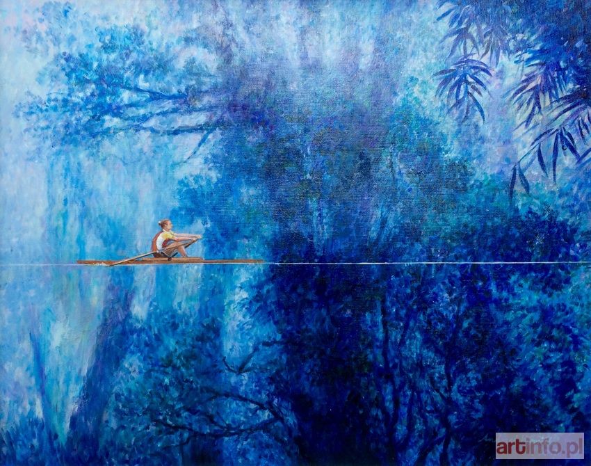 olej na płótnie, 52 x 65 cm sygnowany l. d. róg: ‘Andrzej Wroński 2018 r.’ opisany na odwrocie: ‘„DALEJ” OLEJ, PŁÓTNO, 52 x 65 2017 Andrzej Wroński’ oprawiony