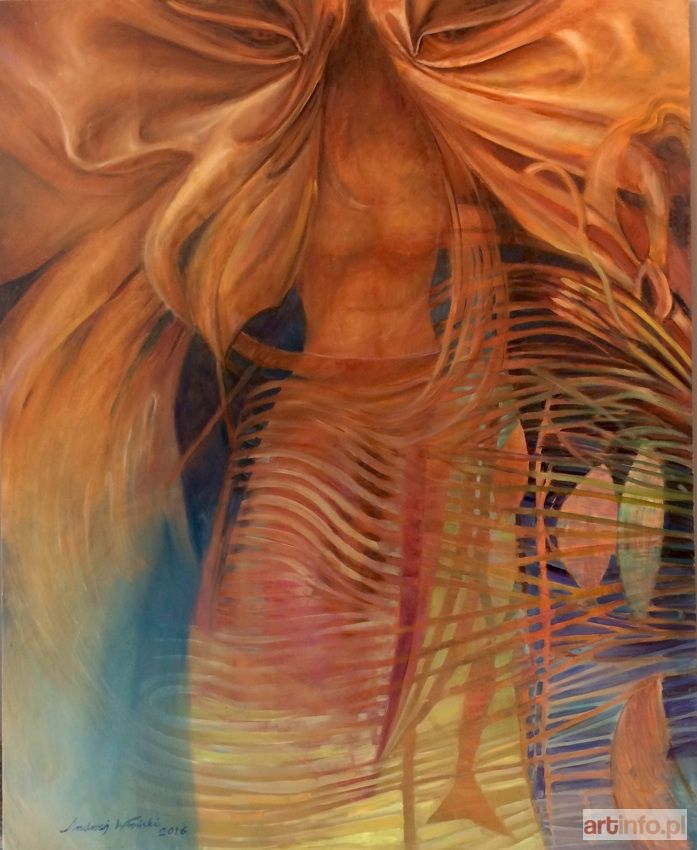 olej na płótnie, 100x81 cm Sygnowany l. d. róg: ‘Andrzej Wroński 2016’ Opisany na odwrocie: ‘KOBIETA Z RYBAMI, OLEJ PŁÓTNO, 100x81cm, 2016 Rok, Andrzej Wroński’