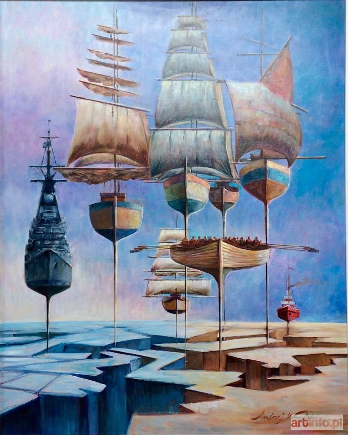 olej na płótnie, 110 x 90 cm Sygnowany p. d. róg: ‘Andrzej Wronski 2017’ Opisany na odwrocie: ‘„Statki” OLEJ PŁÓTNO 110 x 90 cm 2017 Andrzej Wroński’