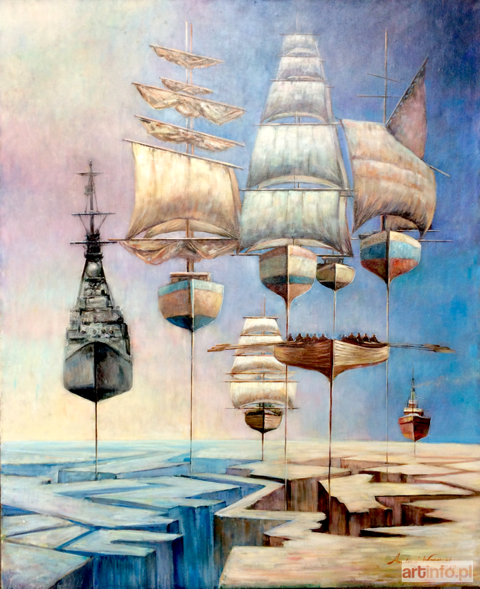 olej na płótnie, 110 x 90 cm sygnowany p. d. róg: ‘Andrzej Wroński 2017’ opisany na odwrociu: ‘”STATKI”, OLEJ PŁÓTNO, 110 x 90 cm, 2017, Andrzej Wroński