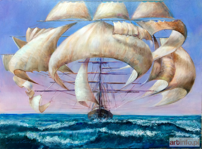 olej na płótnie, 60 x 81 cm sygnowany l. d. róg: ‘Andrzej Wroński 2018’ opisany na odwrociu: ‘„Z WIATREM” | OLEJ PŁÓTNO | 60 x 81 | 2018 | Andrzej Wroński’