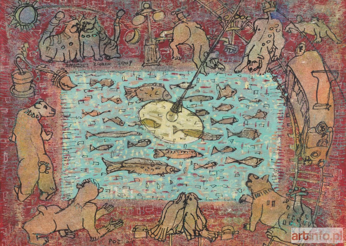gwasz, tusz/papier, 20 x 28 cm (w świetle passe-partout) sygnowany i datowany wewnątrz kompozycji: 'ANDRZEJ ŻUREK 2007' i u dołu: 'POZNAŃ'