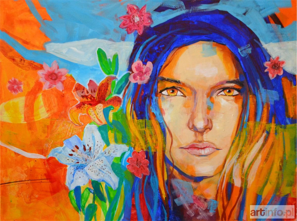 akryl/płótno, 60 x 80 cm, sygnowany p.d: "A.Gozdecka`16"; sygnowany, datowany i opisany na odwrociu: "Anna M. Masiul - Gozdecka'13/16 O PRZYJAŹNI 2"