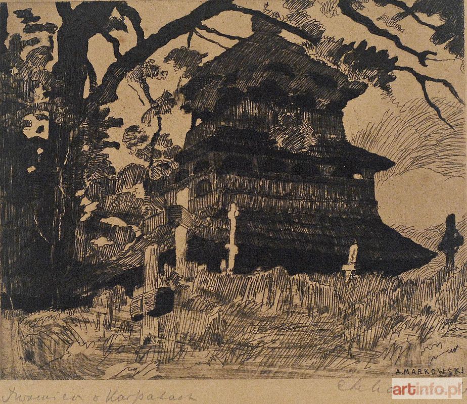 akwaforta z "Teki Graficznej", 14,3 x 17 cm sygn. oł. p.d.: A. Markowski, na płycie p.d.: A. Markowski; oł. l.d.: Dzwonnica w Karpatach.