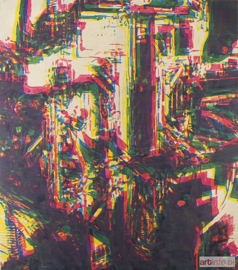 olej/płótno, 160 x 140 cm sygnowany, datowany i opisany na odwrociu: 'BARTEK MATERKA | 2016 | [OFFSET MACHINE (1)]'