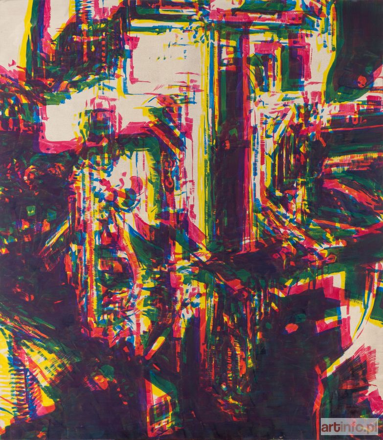 olej/płótno, 160 x 140 cm sygnowany, datowany i opisany na odwrociu: 'BARTEK MATERKA | 2016 | [OFFSET MACHINE (1)]'