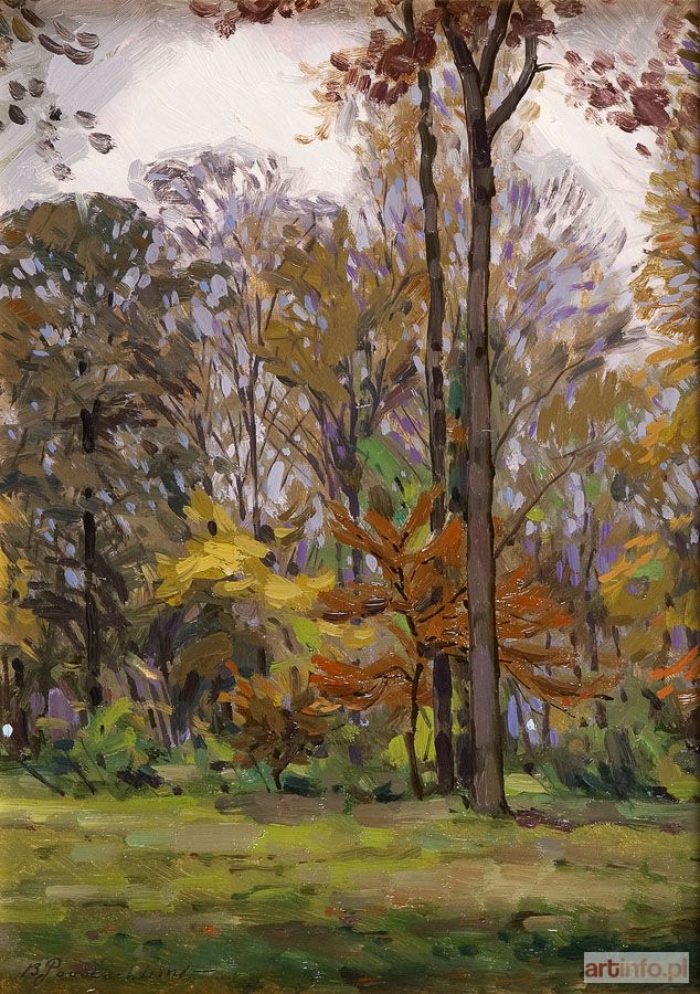 Basile Poustochkine był twórcą utalentowanym i dobrze wykształconym jako malarz, grafik i rysownik. Jego losy w różnych momentach życia wiązały się z Polską - walczył na terenie naszego kraju przeciwko bolszewikom, pracował tutaj i z polskim paszportem wyjechał do Francji. Tam też zamieszkał w pokojach pałacu, który później zajęli polscy dyplomaci państwo Strzałko. Właśnie z ich kolekcji pochodzą wszystkie prezentowane w Marchandzie prace. Przeżycia wojenne wpłynęły na jego osobowość, wprawdzie regularnie wystawiał swoje prace, ale wybrał życie samotnika, odsuwając się od krytyków i życia artystycznego. Tworzył grafiki, projektował wzory tkanin i malował pejzaże. Niewielkie rozmiarami, ale intrygujące, wypełnione łagodnym światłem i pięknem przyrody dzieła. Gdy tworzył pejzażowe studia okolic Paryża w pewnym sensie był spadkobiercą zdobyczy impresjonistów. Jako postimpresjonista nie poszedł jednak w stronę stopniowej dekonstrukcji przyrody, a wręcz przeciwnie - drogą pokazywania jej ducha, kolorów i światła. To, co wyróżnia prace Poustochkina, to także pewna nostalgia zamknięta w tych małych formach. Wśród malowanych łąk, pól i lasów rzadko pojawiają się postacie ludzi, a i wtedy są jedynie dodatkiem do krajobrazu. Częściej za to można spotkać pejzaże jesienne pełne kolorów i stonowanego światła.