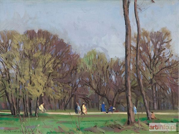 Basile Poustochkine był twórcą utalentowanym i dobrze wykształconym jako malarz, grafik i rysownik. Jego losy w różnych momentach życia wiązały się z Polską - walczył na terenie naszego kraju przeciwko bolszewikom, pracował tutaj i z polskim paszportem wyjechał do Francji. Tam też zamieszkał w pokojach pałacu, który później zajęli polscy dyplomaci państwo Strzałko. Właśnie z ich kolekcji pochodzą wszystkie prezentowane w Marchandzie prace. Przeżycia wojenne wpłynęły na jego osobowość, wprawdzie regularnie wystawiał swoje prace, ale wybrał życie samotnika, odsuwając się od krytyków i życia artystycznego. Tworzył grafiki, projektował wzory tkanin i malował pejzaże. Niewielkie rozmiarami, ale intrygujące, wypełnione łagodnym światłem i pięknem przyrody dzieła. Gdy tworzył pejzażowe studia okolic Paryża w pewnym sensie był spadkobiercą zdobyczy impresjonistów. Jako postimpresjonista nie poszedł jednak w stronę stopniowej dekonstrukcji przyrody, a wręcz przeciwnie - drogą pokazywania jej ducha, kolorów i światła. To, co wyróżnia prace Poustochkina, to także pewna nostalgia zamknięta w tych małych formach. Wśród malowanych łąk, pól i lasów rzadko pojawiają się postacie ludzi, a i wtedy są jedynie dodatkiem do krajobrazu. Częściej za to można spotkać pejzaże jesienne pełne kolorów i stonowanego światła.