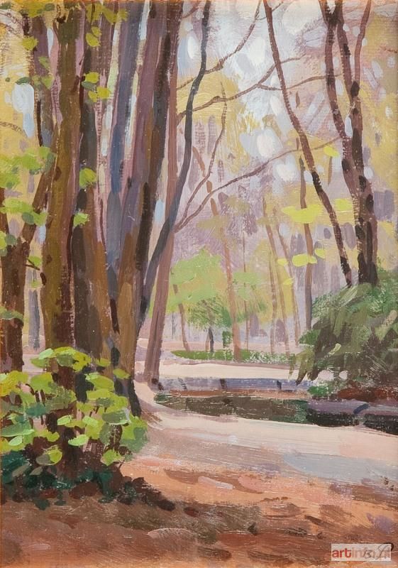 Basile Poustochkine był twórcą utalentowanym i dobrze wykształconym jako malarz, grafik i rysownik. Jego losy w różnych momentach życia wiązały się z Polską – walczył na terenie naszego kraju przeciwko bolszewikom, pracował tutaj i z polskim paszportem wyjechał do Francji. Tam też zamieszkał w pokojach pałacu, który później zajęli polscy dyplomaci państwo Strzałko. Właśnie z ich kolekcji pochodzą wszystkie prezentowane w Marchandzie prace. Przeżycia wojenne wpłynęły na jego osobowość, wprawdzie regularnie wystawiał swoje prace, ale wybrał życie samotnika, odsuwając się od krytyków i życia artystycznego. Tworzył grafiki, projektował wzory tkanin i malował pejzaże. Niewielkie rozmiarami, ale intrygujące, wypełnione łagodnym światłem i pięknem przyrody dzieła. Gdy tworzył pejzażowe studia okolic Paryża w pewnym sensie był spadkobiercą zdobyczy impresjonistów. Jako postimpresjonista nie poszedł jednak w stronę stopniowej dekonstrukcji przyrody, a wręcz przeciwnie – drogą pokazywania jej ducha, kolorów i światła. To, co wyróżnia prace Poustochkina, to także pewna nostalgia zamknięta w tych małych formach. Wśród malowanych łąk, pól i lasów rzadko pojawiają się postacie ludzi, a i wtedy są jedynie dodatkiem do krajobrazu. Częściej za to można spotkać pejzaże jesienne pełne kolorów i stonowanego światła.