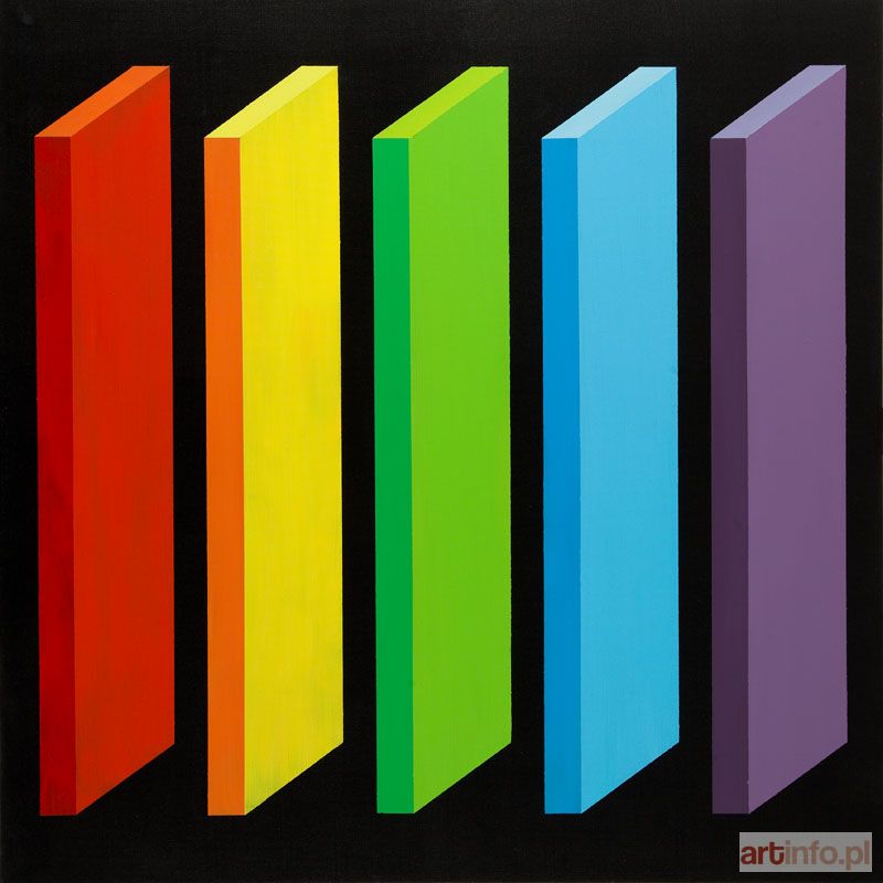 akryl/płótno, 100 x 100 cm sygnowany p.d.: `Campio` na odwrociu opisany: `Campio | ``ANGULAR RAINBOW`` | 2015`