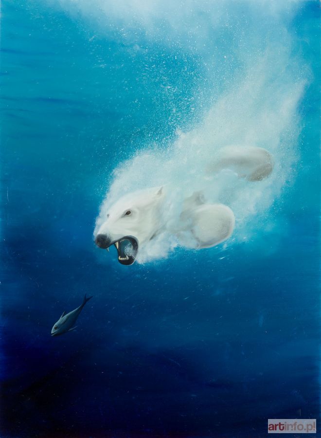 olej/płótno, 100 x 73 cm sygnowany, datowany i opisany na odwrociu: '"Campio" | "POLARNE POLOWANIE" | 2017 r.'