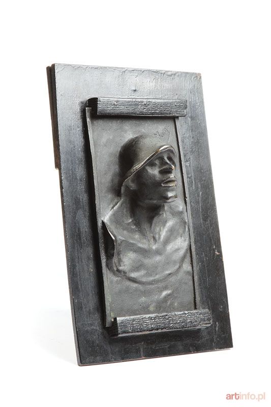 mosiądz malowany na czarno, 19 x 11 cm (wymiar z ramą: 26 x 18 cm) sygnowany p.g.: `C. MEUNIER`