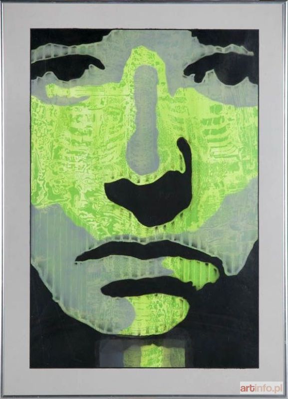 technika własna/papier offsetowy, 60 x 40 cm (w świetle passe-partout) sygnowany p.d.: `Dashi 07` na odwrociu opisany: `DAMIAN DASZKIEWICZ` oraz `ROK 2007 | Z CYKLU: "GŁOWY, TWARZE, MASKI" | "MISTRZ CEREMONII W MASCE` oraz `Dashi | TECHNIKA WŁASNA`