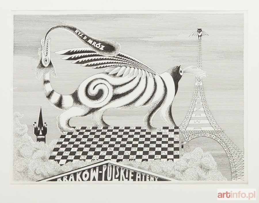 tusz/papier, 30,5 x 41,5 cm sygnowany wśród przedstawianie: 'RYS. D. MRÓZ'