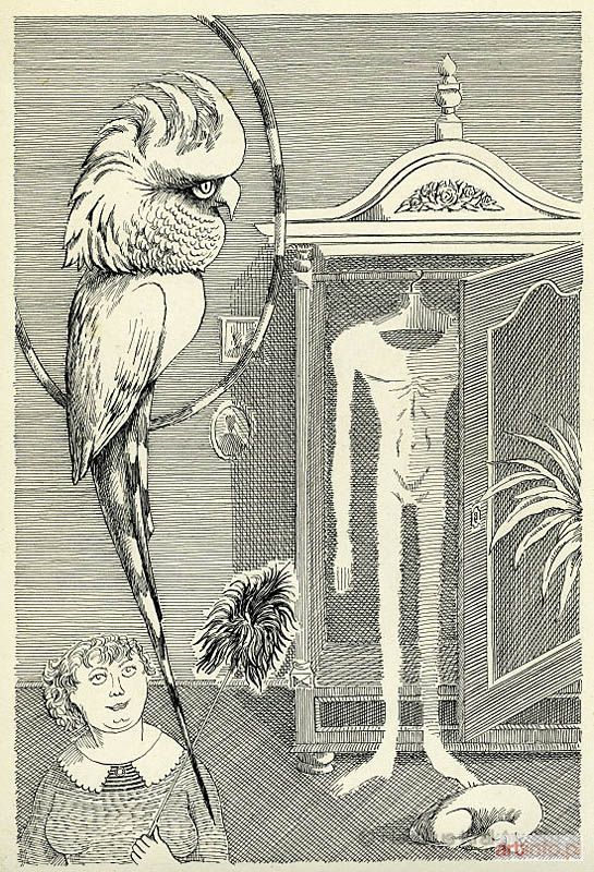 Piórko, tusz, papier; wym.: 28,2 x 18,5 cm; nie sygn. (opis autora dla przygotowalni poniżej kompozycji). Ilustracja do: Jerzy Szaniawski "Opowiadania profesora Tutki", zamieszczonego w tygodniku "Przekrój" nr 781, s. 11, 1960.