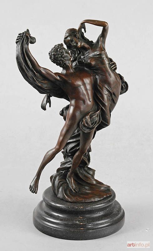 nagi młodzieniec unosi w górę przegiętą ku niemu dziewczynę o długich włosach, w oblepiającej ciało sukni; w prawej ręce tancerza koniec tkaniny udrapowanej za plecami figur; jej spiralnie skręcone fałdy tworzą trzon kompozycji, potęgując wrażenie wirującego ruchu; z boku na podstawie wyryty (wtórnie) napis: "Jean Debut"; rzeźba na kolistym cokoliku z szarego, toczonego marmuru;
