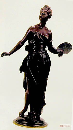 brąz patynowany, patyna brązowa w dwóch odcieniach; wys. 56 cm Sygnowany na podstawie Debut