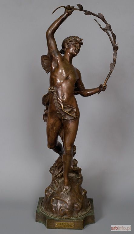 Brąz patynowany wys. 72 cm Sygnowany: Drouot Na podstawie tabliczka: Zephyr | par Drouot | Medaille par Beaux-Arts