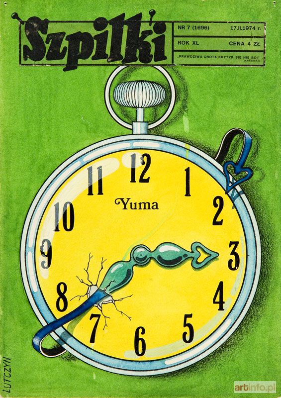 niepublikowana (?) okładka do czasopisma Szpilki akwarela, tusz/papier, 28,5 x 20,5 cm sygnowany l.d.: `LUTCZYN`
