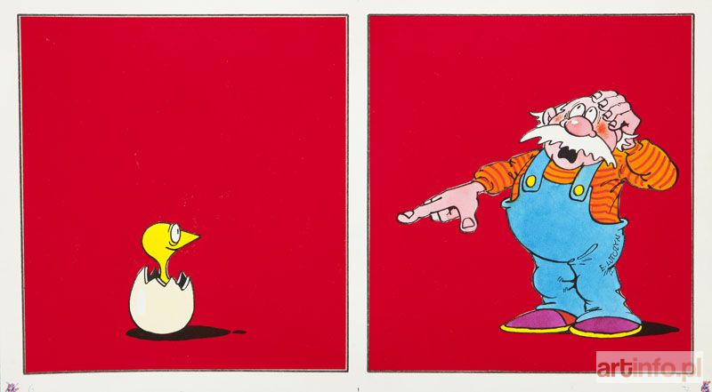 Ilustracja do książki Kurczę blade Wandy Chotomskiej, s. 6 i 7, lata 80. XX w.