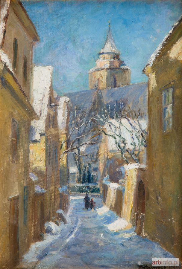 olej/tektura, 46,5 x 32 cm sygnowany i datowany p.d.: 'Matuszczak 1932' opisany na odwrociu: 'Moret sur Loing'