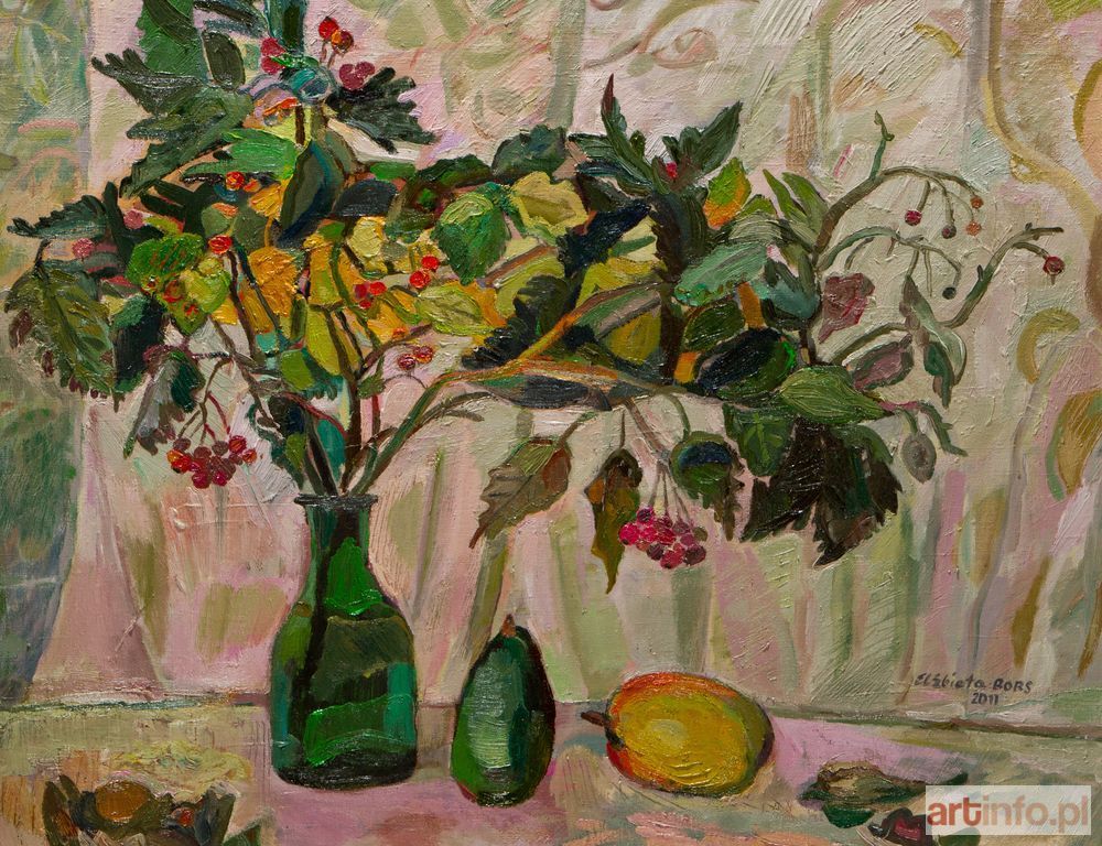 Olej, płótno, 65 x 81 cm Sygnowany p.d.: Elżbieta BORS | 2011; na odwrociu: ELŻBIETA BORS | "JARZĘBINA Z OWOCAMI" | OLEJ 65 x 81 cm | WARSZAWA 2011 r.