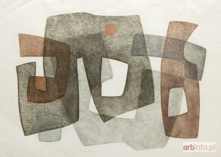 litografia barwna/bibułka, 41 x 56 cm sygnowana ołówkiem śr. d: `F. Pacanowska`