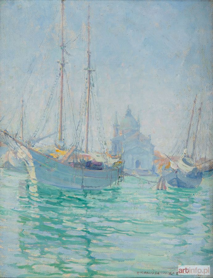 olej/płótno naklejone na tekturę, 48 x 36 cm sygnowany, opisany i datowany p.d.: 'F. ROLIŃSKI · WENECJA · 1924·' na odwrociu dwie papierowe nalepki z Towarzystwa Zachęty Sztuk Pięknych w Warszawie