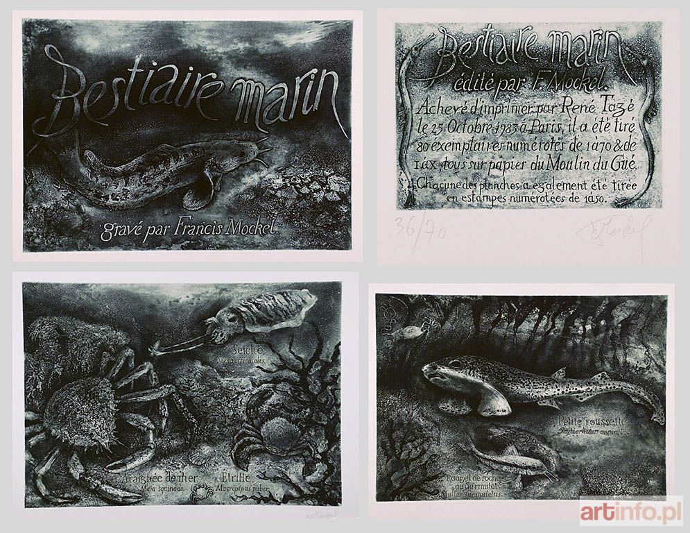 teka w składzie: karta tytułowa, karta z wstępem, 12 kart właściwych grafik z motywem ryb, karta końcowa; całość w oryginalnej oprawie wiązanej; 38 x 51 cm; sygn. p.d.: FMockel (ołówkiem); na karcie końcowej nr odbitki l.d.: 36/70 (ołówkiem)