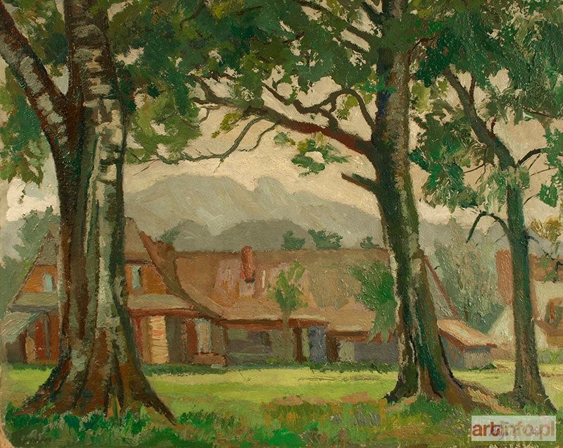 olej, tektura, 49 × 58,5 cm sygn. i dat. p. d.: FWójcik 1950 na odwrocie nalepka potwierdzająca autentyczność pracy przez wnuczkę malarza - Izabelę Leśniak oraz pieczątka artysty: WÓJCIK FRANCISZEK/ ZAKOPANE/ ul.Za STRUGIEM/ NR 27a oraz napis: Pochmurny dzień