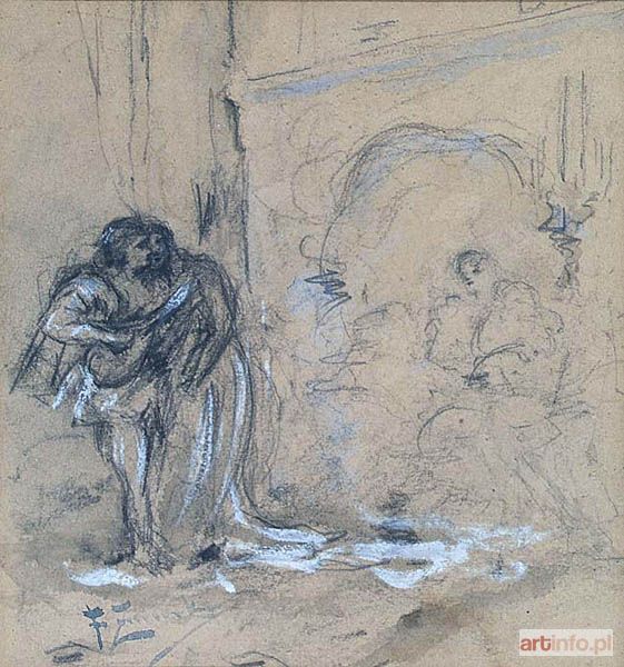 Jest to zapewne szkic do obrazu, o którym nie wiemy, czy ostatecznie powstał. Scena z czasów renesansu włoskiego - Żmurko chętnie nawiązywał do tej epoki oraz do ówczesnych mistrzów włoskich, których bardzo cenił. Szkic jest dość uproszczony, wyraźna jest tylko przytulona do siebie para na pierwszym planie - mężczyzna grający na mandolinie z kobietą w długiej sukni. Na dalszym planie dostrzegamy zarys sylwetki kobiecej na tle architektury.