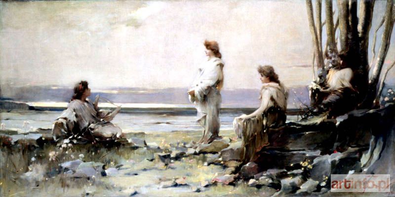 olej, płótno, 100 x 200 cm sygnowany p.d.: Fra Żmurko | Warszawa 1894 Na odwrocie p.g. napis autorski: Replika do Pieśni wieczornej | (oryginał w Ameryce) | Fr. Żmurko | [....] 1893