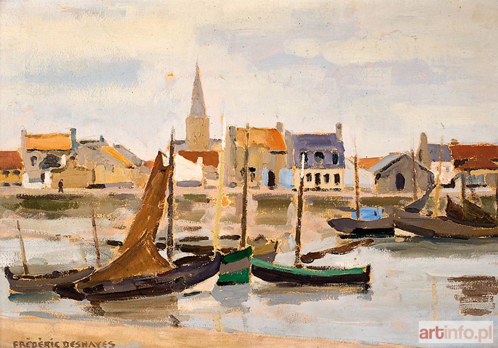 Olej, sklejka 38 x 55 cm Sygnowany l.d.: FRÉDÉRIC DESHAYES Na odwrocie: V Ouais de l'Aa. L'EGLISE