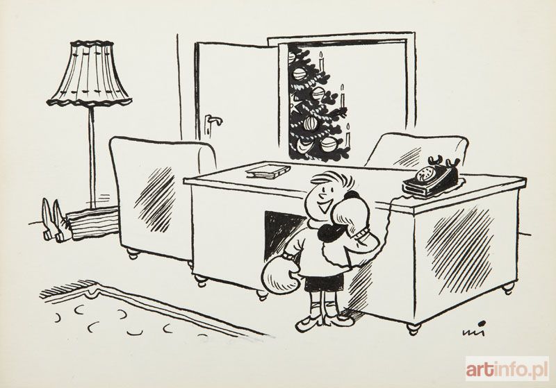 tusz/papier, 16,5 x 23 cm sygnowany p.d.: 'mi' na odwrociu pieczęć czasopisma 'Tygodnik Polski'