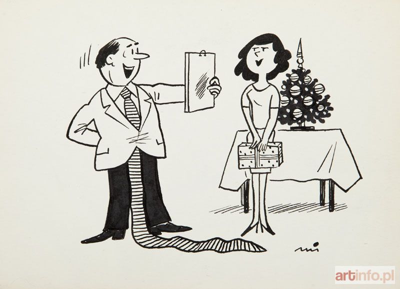 I to ty sama zrobiłaś taki śliczny krawat!?, ilustracja satyryczna do czasopisma Tygodnik Polski, lata 80. XX w.